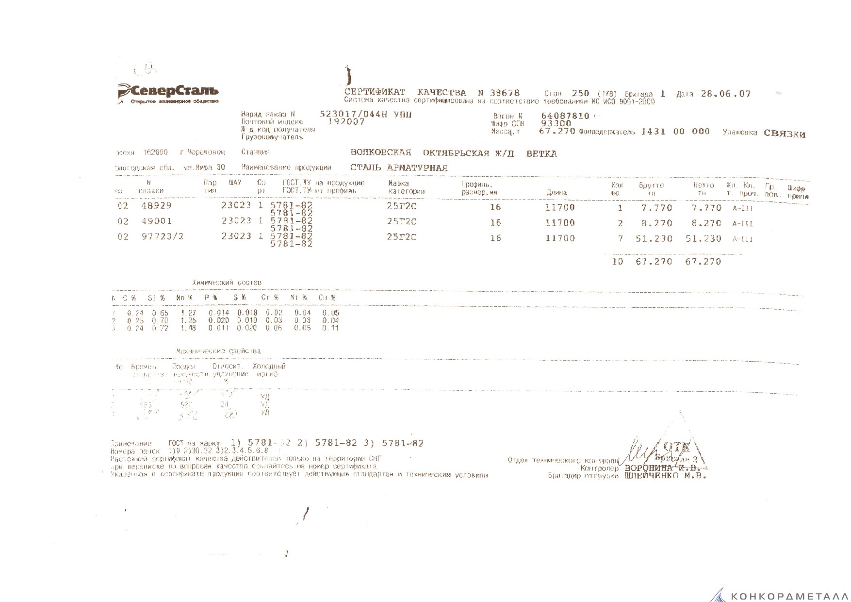 С каждой товарной позицией мы предоставляем все сертификаты и паспорта качества, а также товарно-транспортную накладную.