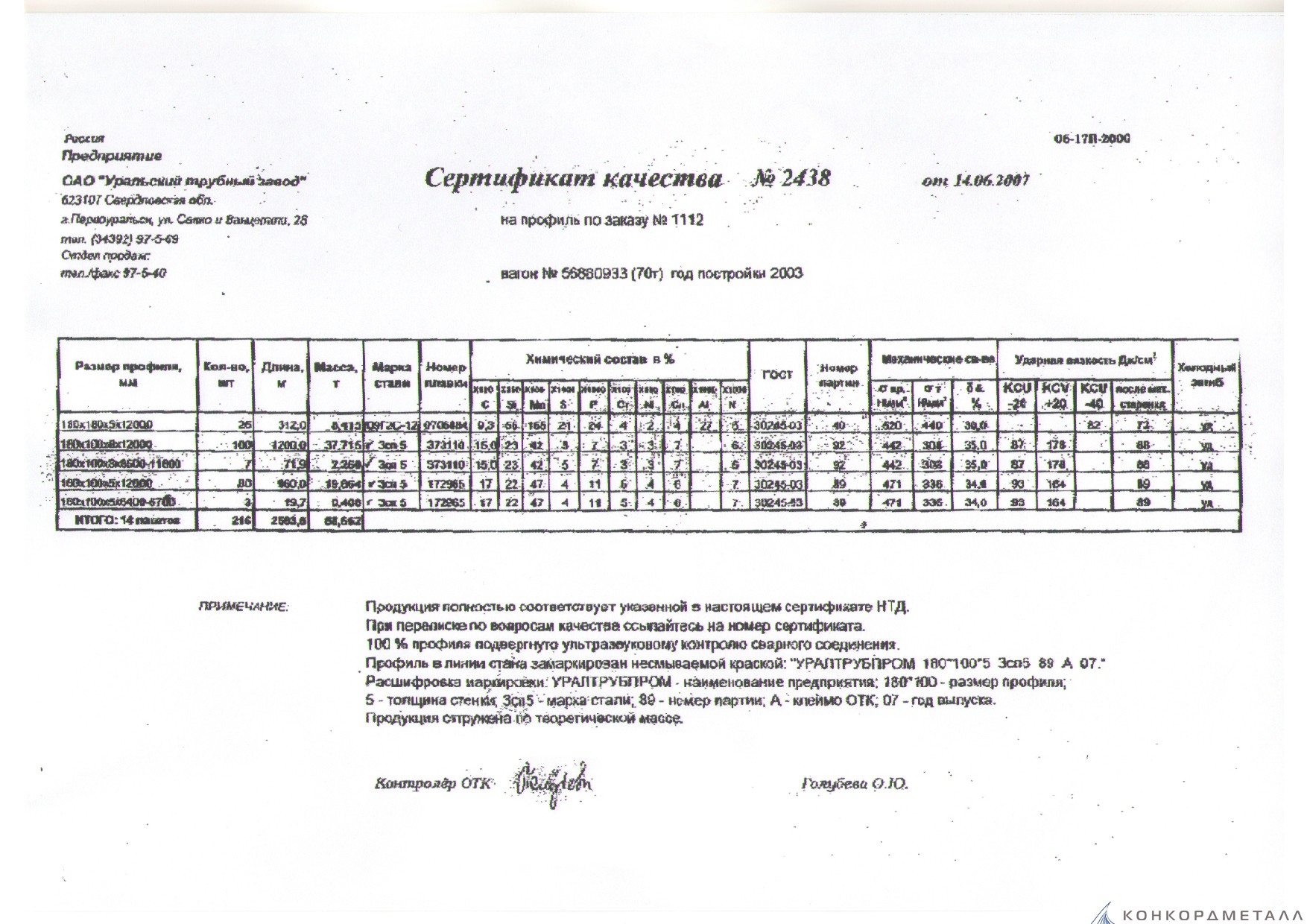 С каждой товарной позицией мы предоставляем все сертификаты и паспорта качества, а также товарно-транспортную накладную.