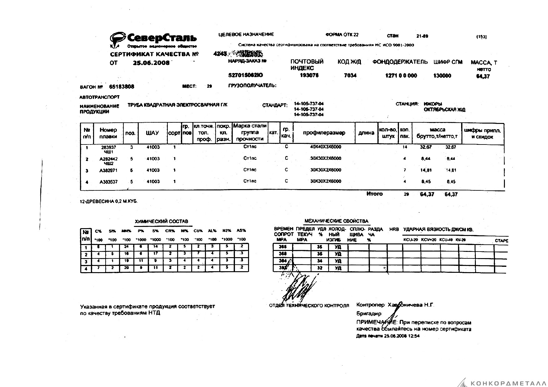 С каждой товарной позицией мы предоставляем все сертификаты и паспорта качества, а также товарно-транспортную накладную.