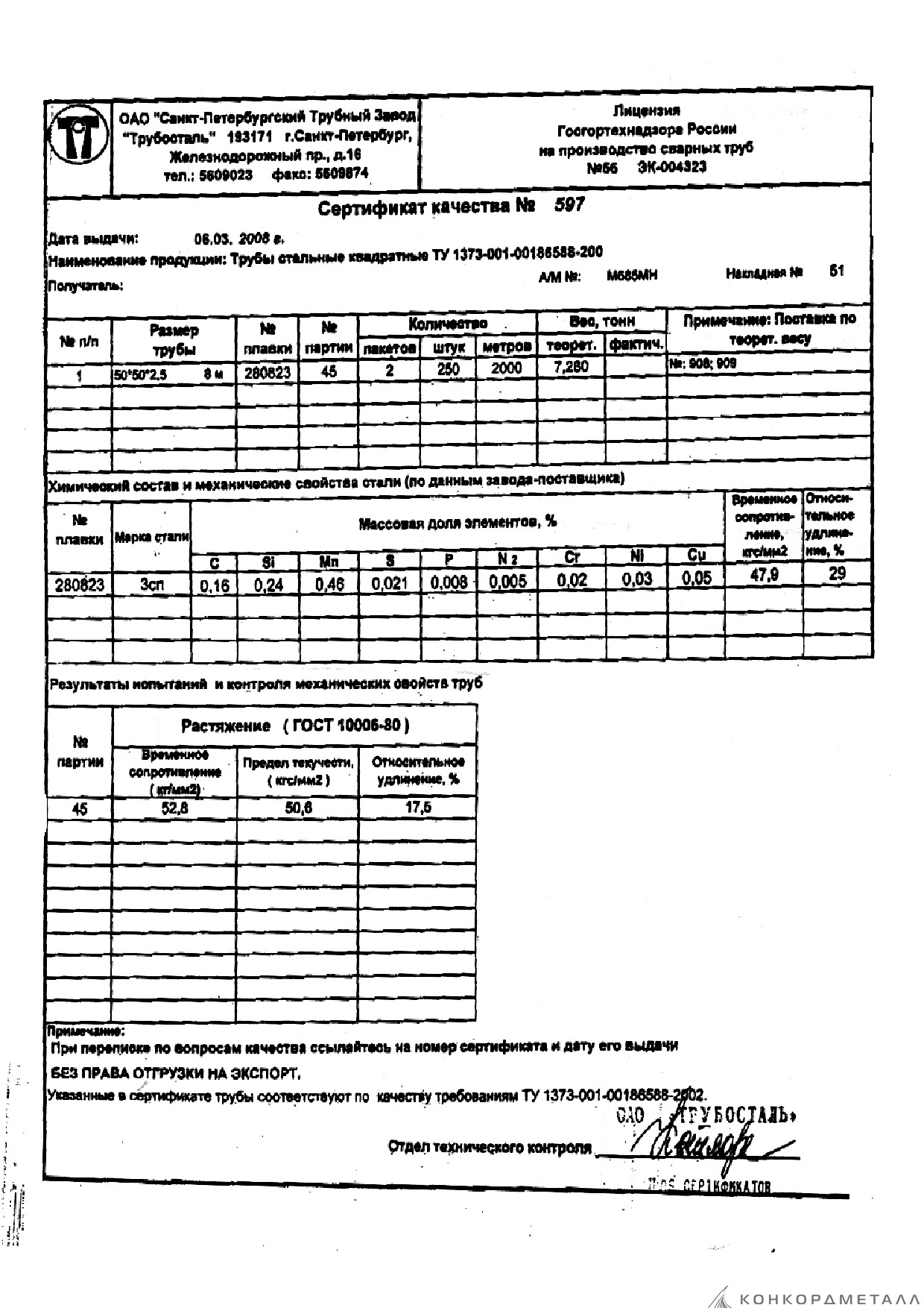 Труба профильная квадратная 50х50х2,5 мм 6 м
