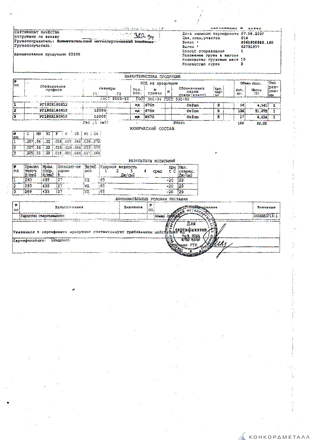 Уголок горячекатаный равнополочный 180х180х12 мм 12 м